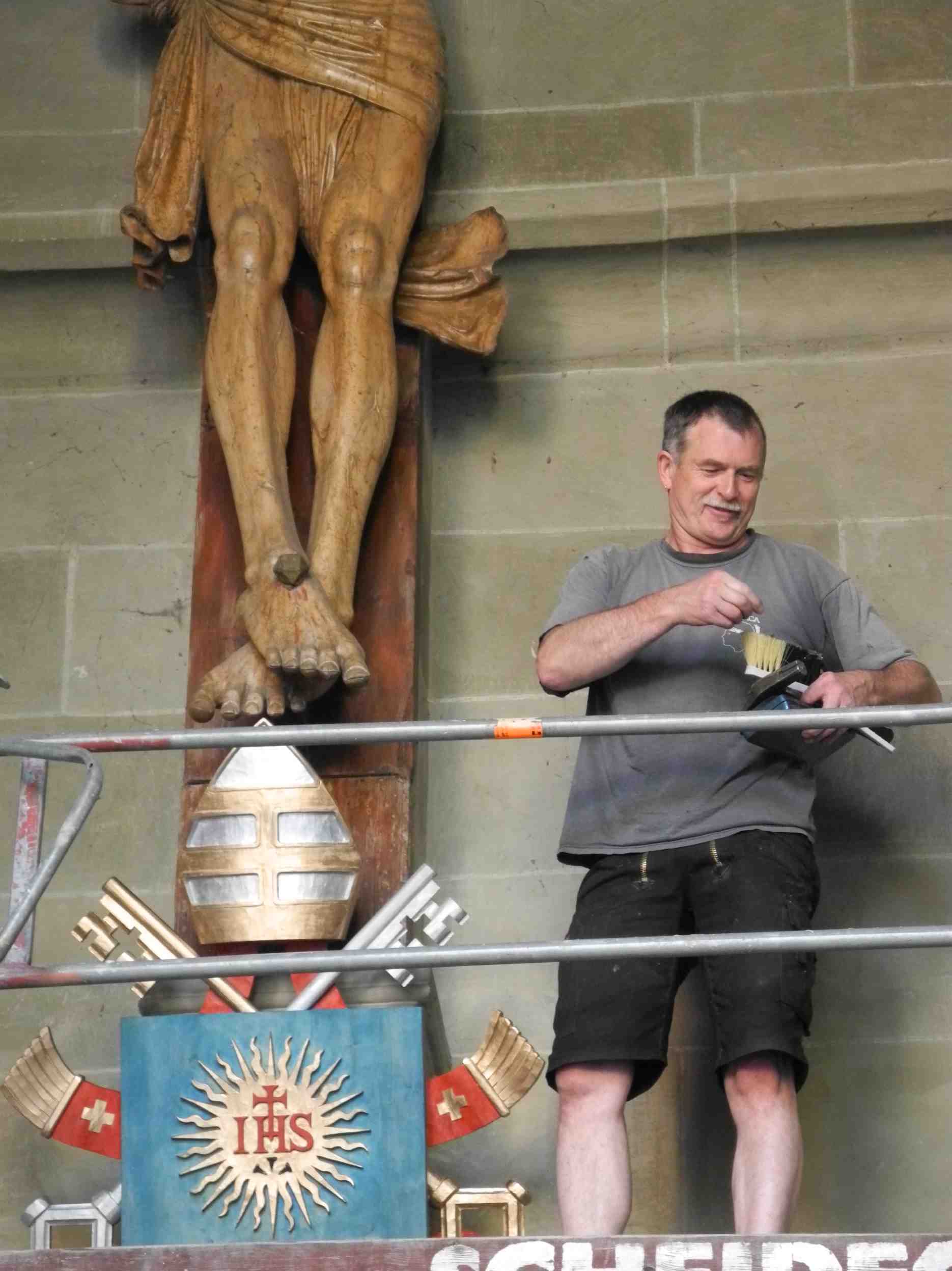 Das neue Papstwappen für das Konstanzer Münster in Arbeit