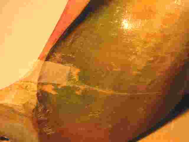 ergänzt werden. Das Holz wurde passgenau eingefügt und dann farblich wieder angepasst.