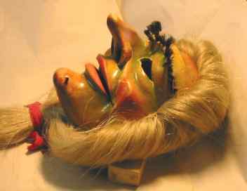 z.B.: Bei dieser Maske war der Unterkiefer in zwei Teile zerbrochen, ein kleines Stück Holz fehlte und musste